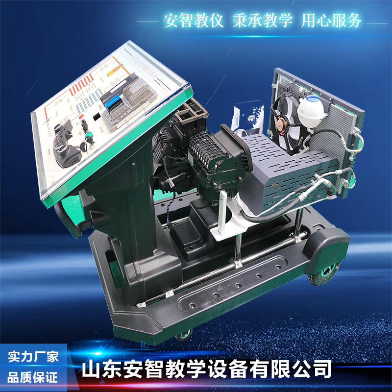 产品配置:空调蒸发箱总成、压缩机、冷凝器及散热风扇、膨胀阀、干燥器、空调控制面板、鼓风机、蒸发器温控开关、空调控制器、管路压力组合开关、功率管、空调继电器及相关传感器和信号模拟装置、汽车实训考核系统、轻松学修车在线教学系统、电机、移动台架、控制面板。; 产品功能: